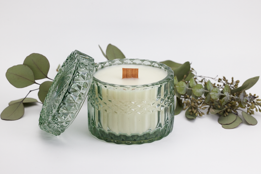 Eucalyptus - 7oz Vintage Etched Glass (Lucent Green) Beeswax Candle