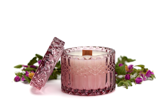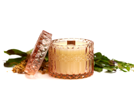 Sandalwood Rose - 7oz Vintage Etched Glass (Lucent Rose) Beeswax Candle