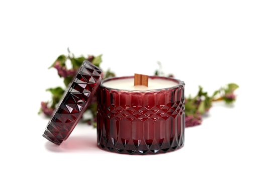 Japanese Cherry Blossom - 7oz Vintage Etched Glass (Garnet) Beeswax Candle