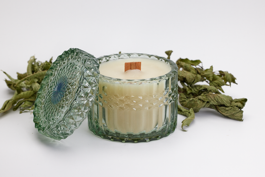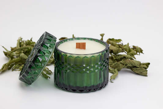 Sweet Mint - 7oz Vintage Etched Glass (Emerald) Beeswax Candle